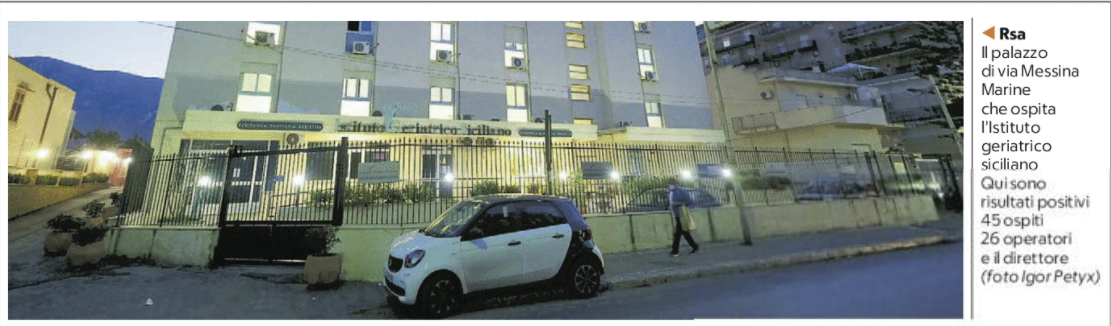 Repubblica: “Palermo. La paura invade l’ospizio, settanta positivi, tre gravi «Ora manca chi li assista»”