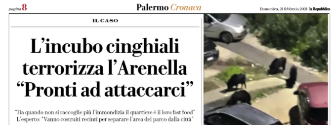 Repubblica: “Palermo. L’incubo cinghiali terrorizza l’Arenella «Pronti ad attaccarci»”