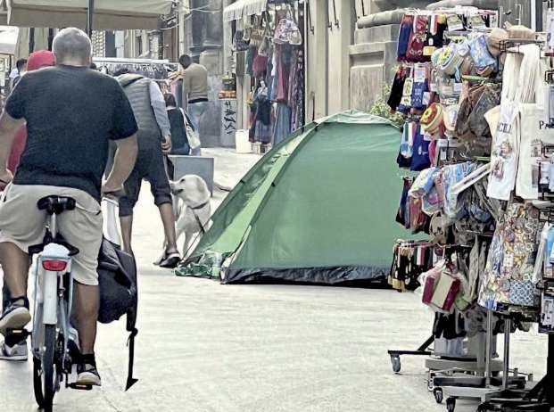 Via Maqueda, una delle arterie più antiche di Palermo, sta vivendo una trasformazione caotica e disordinata che ha portato a una situazione di anarchia totale. Un senzatetto ha recentemente montato una tenda da campeggio al centro della strada, simbolo di un degrado che si mescola a una crescente confusione tra ristoranti, bancarelle abusive, e una gestione del suolo pubblico sempre più fuori controllo. I dehors dei locali invadono i marciapiedi, rendendo difficile il passaggio dei pedoni, mentre monopattini e biciclette sfrecciano nonostante i divieti, e i camion di rifornimento si fanno strada tra tavolini affollati da turisti.