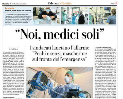 Repubblica Palermo: “«Noi, medici soli». Ecco la situazione degli ospedali palermitani”