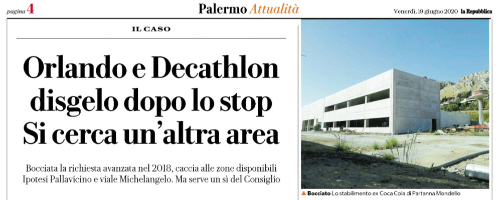 Repubblica: “Palermo. Orlando e Decathlon, disgelo dopo lo stop. Si cerca un’altra area”