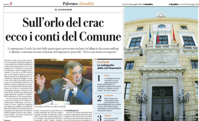 Repubblica: “Palermo. Sull’orlo del crac ecco i conti del Comune. Buco in bilancio da trenta milioni”