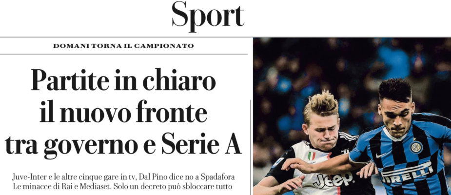 Repubblica: “Partite in chiaro, il nuovo fronte tra governo e Serie A. Solo un decreto può sbloccare tutto per la giornata di domani, i dettagli”