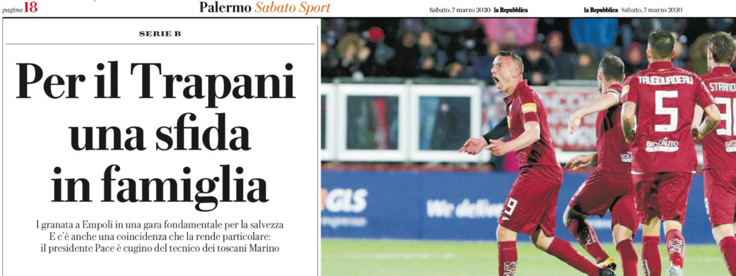 L’edizione odierna de “La Repubblica” si sofferma sul momento del Trapani. Due marsalesi, uno contro l’altro: addirittura legati da vincolo di parentela, per una sfida da “mors tua, vita mea”. Il primo, Pasquale Marino, allenatore dell’Empoli; l’altro, Pino Pace, presidente del Trapani. Questo pomeriggio ( ore 15, in diretta su Dazn), Empoli- Trapani varrà un’importante fetta di salvezza per i granata, ma avrà in palio tre punti fondamentali nella corsa alla serie A dei toscani. «Pasquale è cugino di mia moglie — racconta Pace — ma ci conosciamo fin da bambini. Siamo cresciuti nello stesso quartiere e giocavamo insieme a calcio dopo la scuola. Con lui ho tanti bei ricordi». Fino a sei partite fa, Empoli e Trapani navigavano entrambe nella parte bassa della classifica, con la formazione toscana pienamente impelagata in zona retrocessione. Poi, proprio l’arrivo di Marino ha capovolto il campionato dell’Empoli. In sei gare, cinque vittorie e una sconfitta, con 15 gol fatti e 6 subiti, e l’immediata scalata dalla sedicesima all’ottava posizione: cioè, dai play- out ai play- off. «Le ultime prestazioni fanno ben sperare. Con un pizzico di fortuna in più e maggiore consapevolezza dei propri mezzi — spiega il presidente del Trapani — avremmo anche potuto capitalizzare molto di più. Fin quando la matematica non ci condannerà, bisognerà lottare fino all’ultimo. È noto che l’Empoli sia una squadra attrezzata per la categoria. Ha un allenatore esperto, che ha dato una scossa all’ambiente. Viene da una striscia positiva e sarà, dunque, una partita difficilissima. Ce la possiamo giocare a viso aperto, con l’intelligenza tattica di Castori. A Pasquale Marino, semplicemente, invio uno sportivissimo in bocca al lupo e che vinca il migliore. Ovviamente, augurandoci che il migliore sia il Trapani. Riporto ciò che è stato garantito a me — conclude Pino Pace — ed al consigliere Marino, al momento dell’insediamento in Cda, da Fabio Petroni: “Crediamo in Trapani e nel Trapani Calcio”. Fino ad oggi, con gli sforzi economici di Alivision Transport, non possiamo che confermare che ci sarà un futuro per i colori granata. Intanto, crediamo tutti nella salvezza, affrontando una partita alla volta e lasciando da parte personalismi e sterili polemiche».