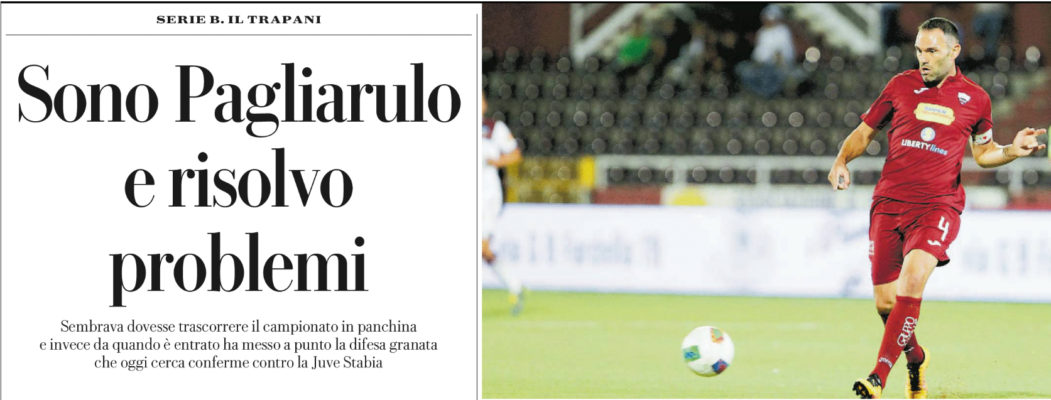 L’edizione odierna de “La Repubblica riporta le dichiarazioni di Luca Pagliarulo, difensore del Trapani: «Sì, il Capitano nella rosa ci sta, ma è giusto che parta dalla panchina: magari, si farà una decina di presenze». Poi la storia è sempre la stessa, lui entra in campo e non lascia più il posto. Questo pomeriggio, contro la Juve Stabia, collezionerà la sua presenza in campionato numero 275 con il Trapani. E magari proverà a realizzare il suo ventiduesimo gol. In estate qualcuno della proprietà lo avvicina e, senza troppi giri di parole, gli dice: «Sai, Luca, tu sei importante per noi, ma forse è giunto il momento che ci dia una mano come dirigente, non a guidare la squadra dal campo». Ci rimane malissimo. Sta in silenzio, ma dentro rimugina, gli si aggroviglia lo stomaco. No. Il Capitano non è uno di tante parole: sa che ha 36 anni, ma sa anche che il momento di lasciare il campo non è arrivato. Incassa e sta zitto. Continuando a lavorare e far vedere al nuovo tecnico Baldini che il suo posto è ancora lì, al centro della difesa. Introverso, si rode dentro: come accadde per “ I treni del gol”, inchiesta su Catania-Trapani del 2015, in cui venne velatamente accusato di aver favorito il successo degli avversari. Un professionista di specchiate qualità morali, costretto a subire le parole infamanti. Il silenzio, come sempre, fu la sua arma. Scagionato del tutto quale mese fa, ha pagato con il dimagrimento di dieci chili. Il silenzio gli dà ragione. Come gli ha dato ragione la scorsa estate, quando poi la nuova proprietà ha fatto marcia indietro, confermandolo “ bandiera” di questo gruppo.