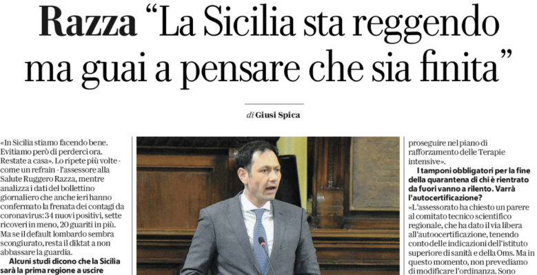 Repubblica: “Razza: «La Sicilia sta reggendo ma guai a pensare che sia finita»”