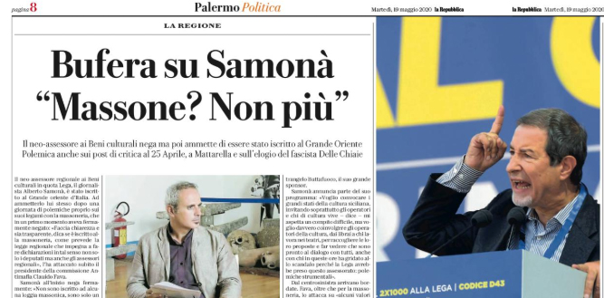 Repubblica: “Regione Sicilia. Bufera su Samonà “Massone? Non più”
