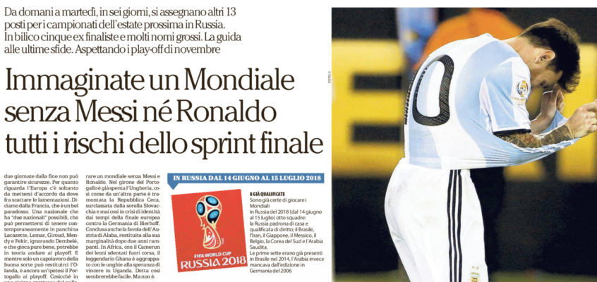 Repubblica: “Ripartono le qualificazioni al mondiale. Messi, Ronaldo e altri big rischiano di restare fuori”