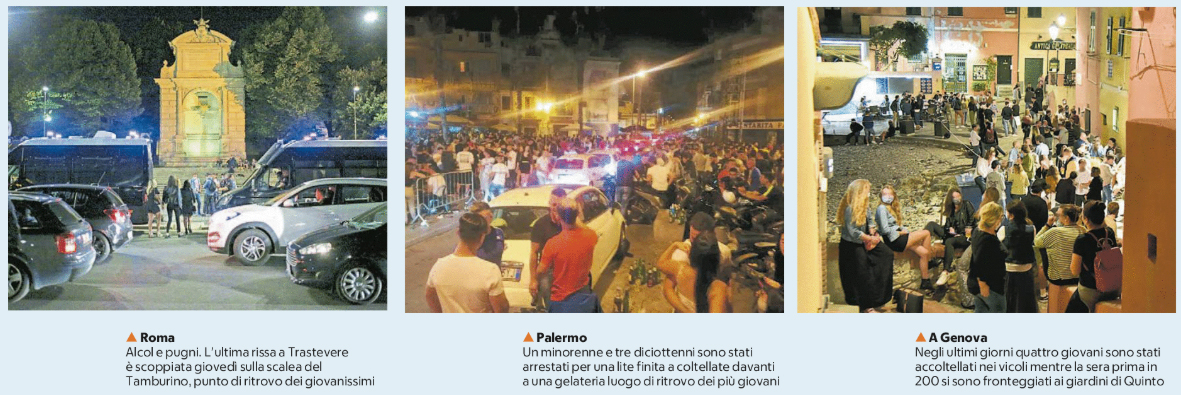 Repubblica: “Risse dopo mesi di clausura. La movida violenta dei ragazzini. Orlando: «Gli assembramenti provocano tensione. Offriamo ai giovani più spazi all’aperto»”