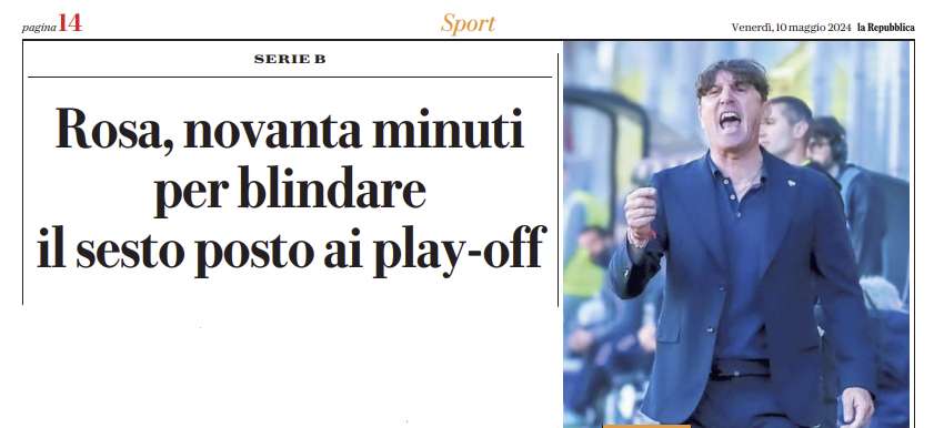 Repubblica: “Rosa, novanta minuti per blindare il sesto posto ai play-off”