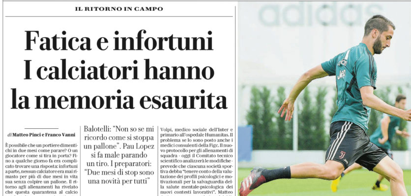Repubblica: “Serie A. Il ritorno in campo. Fatica e infortuni. I calciatori hanno la memoria esaurita”