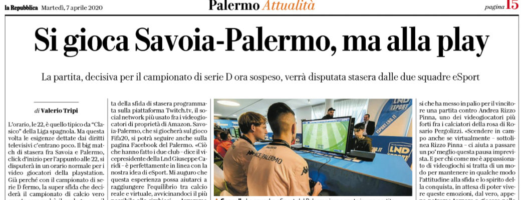 Repubblica: “Si gioca Savoia-Palermo, ma alla play. La partita verrà disputata stasera dalle due squadre eSport”