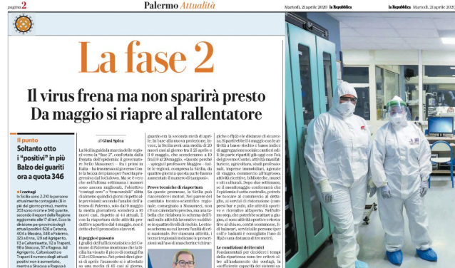 Repubblica: “Sicilia. La fase 2. Il virus frena ma non sparirà presto. Da maggio si riapre al rallentatore”