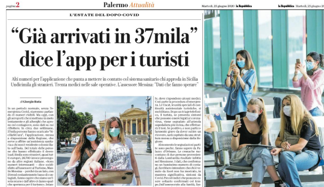 Repubblica: “Sicilia, l’estate del dopo-Covid “Già arrivati in 37mila” dice l’app per i turisti”
