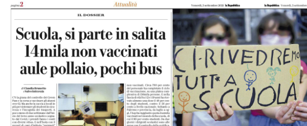 Repubblica: “Sicilia: Scuola, si parte in salita. 14mila non vaccinati, aule pollaio, pochi bus”