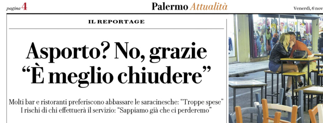 Repubblica: “Sicilia zona arancione. A Palermo molti bar e ristoranti preferiscono abbassare le saracinesche «Troppe spese»”