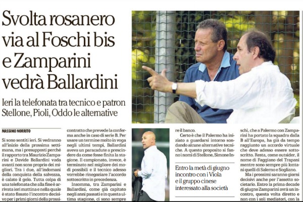 Repubblica: “Svolta rosanero. Via al Foschi bis e Zamparini vedrà Ballardini”