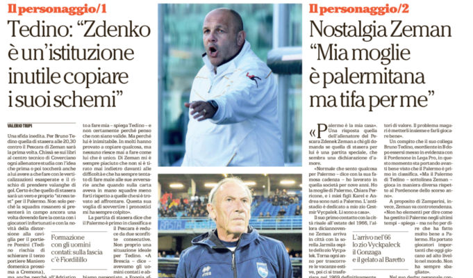 Repubblica: “Tedino e Zeman presentano Pescara-Palermo. Il boemo: «Mia moglie è palermitana ma tifa per me»”