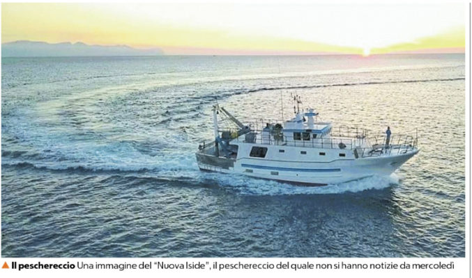 L’edizione odierna de “La Repubblica” si sofferma sul naufragio del peschereccio di Terrasini “Nuova Iside”. Ieri è stato trovato il corpo di Giuseppe Lo Iacono, 33 anni, che insieme allo zio Matteo Lo Iacono, 53 anni, e al cugino Vito, si trovava a bordo del natante scomparso. Il forte vento di scirocco e il mare forza 5 potrebbero aver sorpreso i marinai poco prima del loro rientro. Diverse le ipotesi: dall’avaria ai motori che avrebbe lasciato il peschereccio in balia dello scirocco, all’onda anomala che potrebbe aver colto di sorpresa l’equipaggio senza dare loro scampo. «Qualunque cosa sia successa, mio fratello non ha avuto il tempo di lanciare un Sos – racconta ancora Danilo Lo Iacono – La motonave era equipaggiata con tutti i sistemi di emergenza satellitari. Sarebbe bastato premere un pulsante per lanciare l’allarme. Probabilmente, a bordo, non avranno avuto il tempo di farlo».