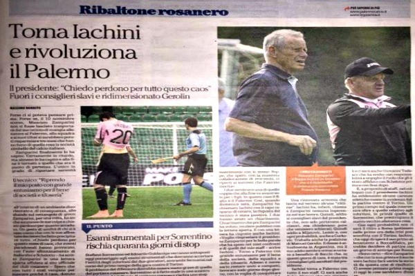 “Forse ci si poteva pensare prima – scrive “La Repubblica” – forse se, il 10 novembre scorso, Maurizio Zamparini non si fosse lasciato trasportare dal suo istinto di mangia allenatore al Palermo, alla squadra e ai suoi tifosi si sarebbero potuti risparmiare tre mesi che hanno fatto di quella rosa la società zimbello del calcio italiano. Zamparini finalmente lo ha capito. Certamente in ritardo, ma almeno lo ha capito e alla fine è tornato a quello che era il punto di partenza. L’unico in grado di riportare serenità all’interno di un ambiente disorientato. Zamparini e Iachini si sono ritrovati, una rinnovata armonia che lascia sul terreno alcune vittime. Iachini ha, infatti, chiesto a Zamparini nessuna ingerenza nel suo lavoro. Quindi, addio ai consiglieri slavi del presidente, che non solo portavano i calciatori, ma volevano pure che venissero schierati. Quindi addio a Mijatovic, Lemic e Curkovic. Traballa anche la posizione di Manuel Gerolin, il diesse è attualmente in Argentina ma il suo addio sembra ormai scontato a beneficio di Dario Baccin che, in questi giorni è stato tra i consiglieri più ascoltati dal presidente. Iachini torna a Palermo con tutto il suo staff. Ci saranno anche Viviani e Giovanni Tedesco […]”.
