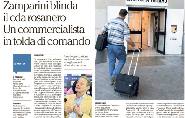 Repubblica: “Zamparini blinda il cda rosanero. Un commercialista in tolda di comando. Ecco chi è Giovanni Giammarva”