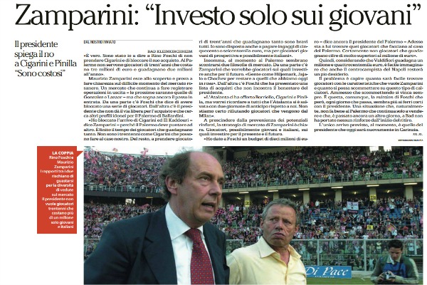 Repubblica: “Zamparini: «Investo solo sui giovani». Foschi lascia?”