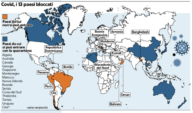 Repubblica: “La stretta contro il Virus. Perù, Brasile e Moldavia nella blacklist di 13 Paesi. Così l’Italia si blinda”