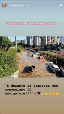 Attraverso le proprie storie Instagram, l’ex bomber rosanero Giovanni Ricciardo ha espresso la propria solidarietà alla città di Palermo dopo l’alluvione di ieri. In alto la storia in questione.