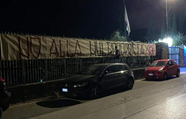 L’ultimo in ordine di tempo riguarda uno striscione, questa firma Sezione Toscana e con un ippocampo alla fine del messaggio: “No alla multiproprietà”, recita lo striscione esposto all’esterno dell’ingresso principale del Centro Tecnico Federale di Coverciano, casa della Federazione Italiana Gioco Calcio a Firenze.