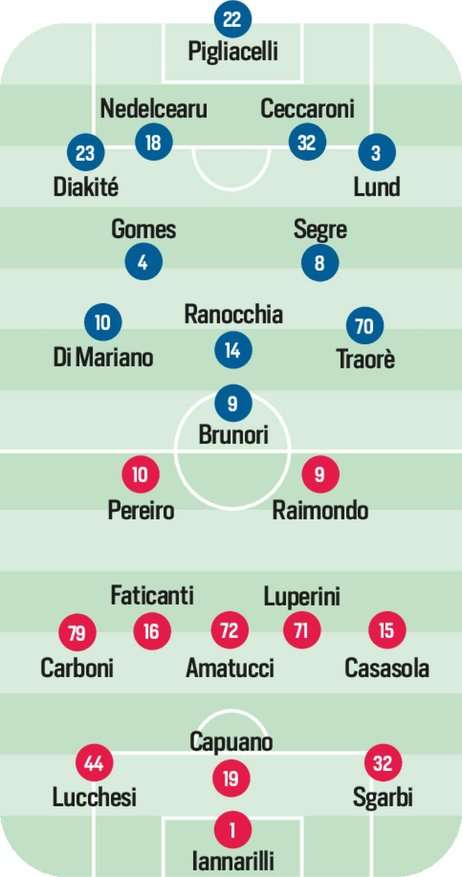 All.: Breda. A disp.: 18 Vitali, 22 Franchi, 3 Zoia, 4 Sorensen, 5 Boloca, 6 Dalle Mura, 8 de Boer, 25 Labojko, 66 Pyyhtia, 73 Marginean, 17 Favilli, 28 Distefano, 65 Dionisi. Ind.: Viviani, N’Guessan, Zuberek, Favasuli. Diff.: Favilli, Lucchesi. Ultime: C hance per Faticanti (o de Boer e Marginean) e Raimondo per Favilli. TERNANA 3-5-2
