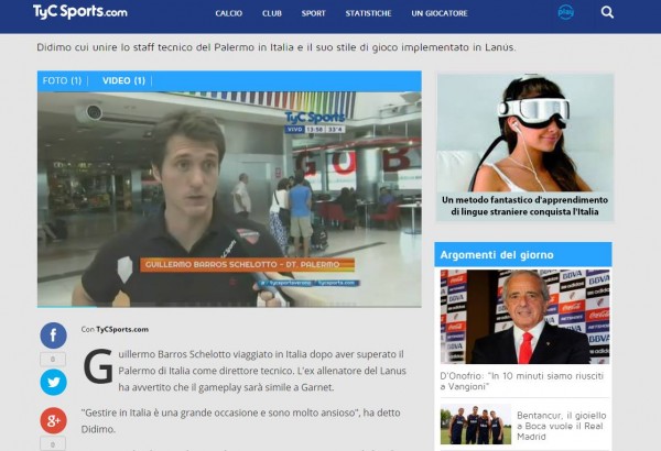 Il neo tecnico rosanero, Guillermo Barros Schelotto, giunto in aeroporto per prendere il volo che lo porterà in Italia, ha scambiato due battute con la stampa argentina (CLICCA QUI PER IL VIDEO IN VERSIONE ORIGINALE). Ecco le sue parole: «Allenare in Italia è una grande occasione e sono molto ansioso. Stiamo andando per adattarci ad un nuovo campionato e nuovi giocatori – ha detto a TycSports – , ma l’idea di essere una squadra lotterà sempre per vincere».