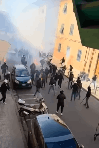 Le due tifoserie si sarebbero affrontate con bastoni, mazze e caschi, dando vita a una vera e propria guerriglia urbana. Sono stati esplosi fumogeni e bombe carta, mentre numerosi video circolati sui social mostrano scene di panico con cittadini e commercianti costretti a rifugiarsi nei negozi per evitare di essere coinvolti.