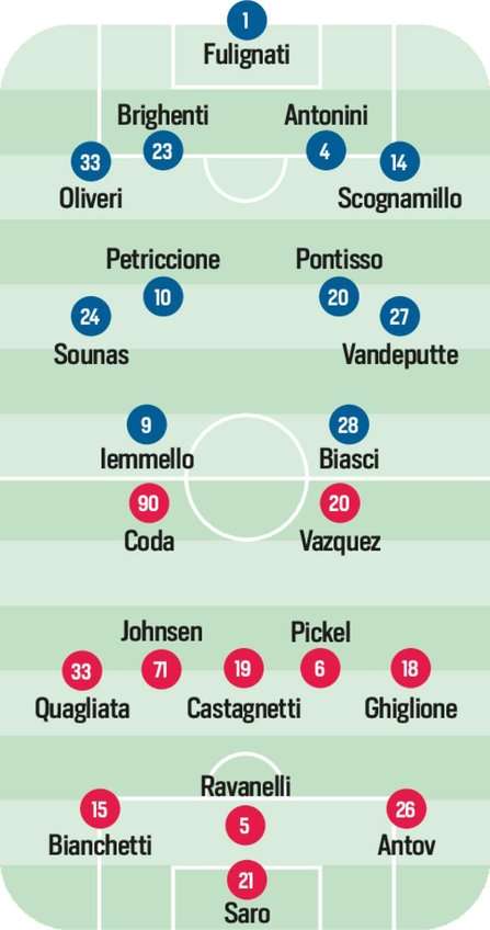 Allenatore: Vivarini. A disposizione: 16 Sala, 22 Borrelli, 72 Veroli, 32 Krajnc, 44 Miranda, 8 Verna, 21 Pompetti, 19 Stoppa, 17 Brignola, 40 Rafele, 41 Viotti, 99 Donnarumma. Indisponibili: Ambrosino, D’Andrea, Ghion, Situm. Diffidati: Scognamillo, Iemmello. Ultime: Fulignati tra i pali. Oliveri titolare. In attacco Donnarumma o Biasci (favorito).