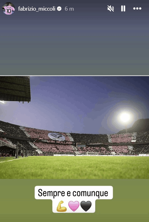 Sui social è arrivato anche il sostegno dell’ex capitano rosanero Fabrizio Miccoli che sulle proprie storie Instagram ha pubblicato una foto della curva rosanero con scritto “Sempre e Comunque”.