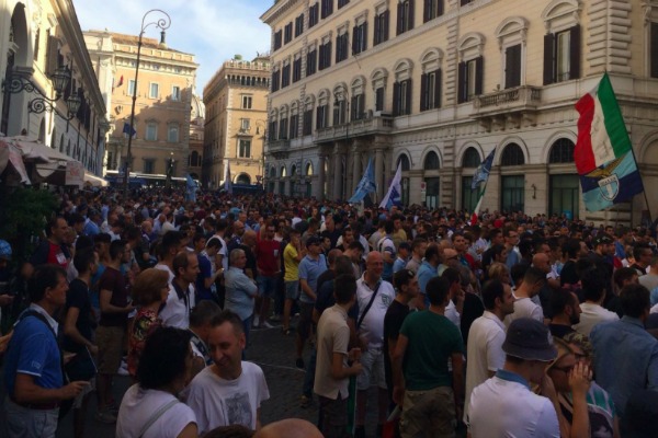 Sono circa un migliaio i tifosi biancocelesti che hanno raggiunto Piazza Santi Apostoli per protestare contro la società e contro le scelte del presidente Lotito. Il motivo scatenante della rabbia dei tifosi è stato il mancato arrivo dell’allenatore argentino Bielsa. Questo quanto riporta “gianlucadimarzio.com”. In alto, ecco una delle foto in questione, presente sempre sul sito dell’esperto di calciomercato Gianluca Di Marzio, in cui viene mostrata la folla che protesta.