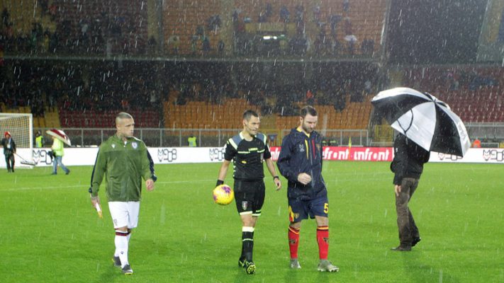 Dopo quello di ieri causa maltempo, la partita tra Lecce e Cagliari rischia un nuovo rinvio a data da destinarsi. Si era sviluppata la possibilità di giocare oggi 25 novembre alle 18:00, ma secondo quanto riporta “Notiziecalcio24.it” continua il maltempo nella città salentina e ciò spingerà il giudice di gara, quasi sicuramente, a confermare il rinvio.