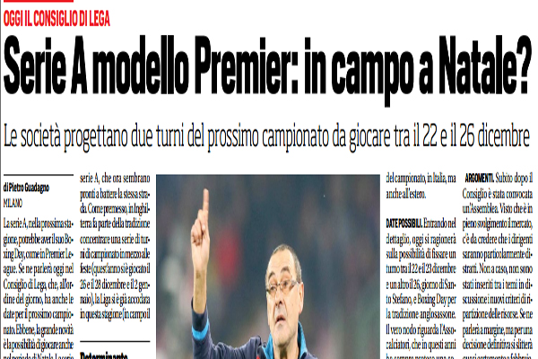 Serie A modello Premier : in campo a Natale? Ecco perchè si può