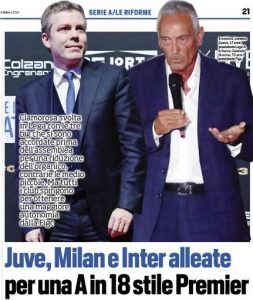 L'edizione odierna di Tuttosport si sofferma sulla riforma della serie A che non si attuerà. Alla fine le riforme non...