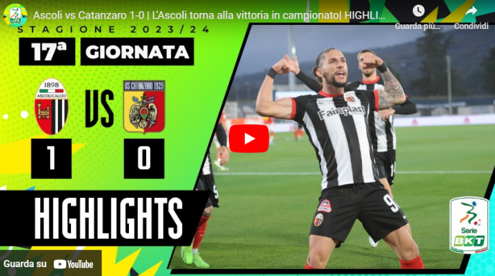 Termina 1-0 il match di serie B tra Ascoli e Catanzaro.