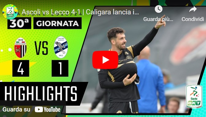 Il match della 30esima giornata di Serie B tra Ascoli e Lecco termina 4 a 1. Di seguito gli highlights della partita: