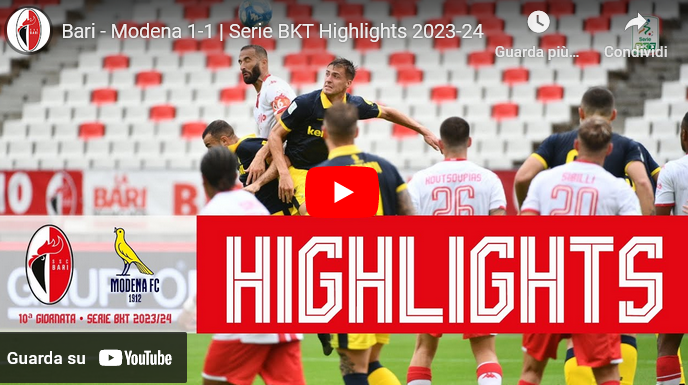 Termina 1-1 la gara di serie B tra Bari e Modena.