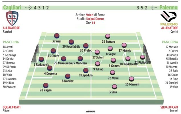 L’edizione odierna de “Il Giornale di Sicilia” si sofferma sulle probabili formazioni del match tra Cagliari e Palermo.