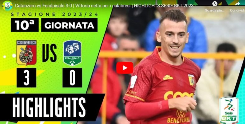 Termina 3 a 0 la partita della 10^ giornata di Serie B tra Catanzaro e Feralpisalò. Ecco gli highlights del match: