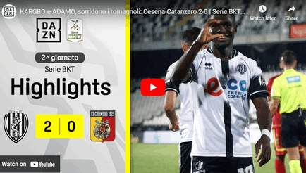 Il Cesena fa due su due al Manuzzi e piega 2-0 il Catanzaro grazie ai gol di Kargbo e Adamo.