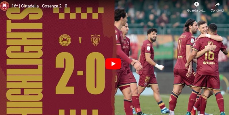 Termina con il risultato di 2 a 0 il match di Serie B tra Cittadella e Cosenza. Ecco gli highlights della partita: