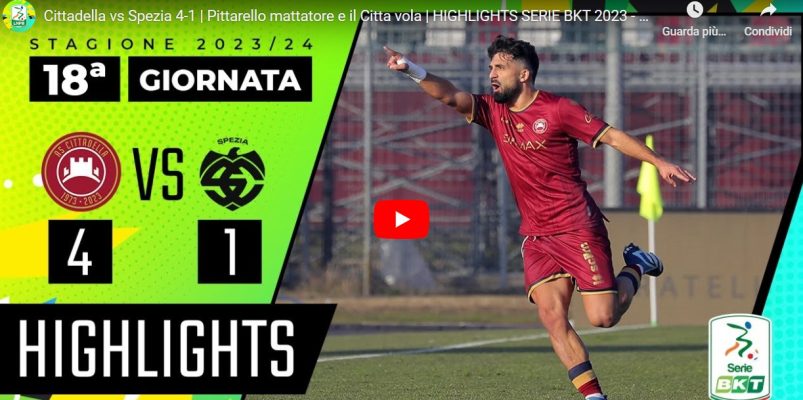 Cittadella-Spezia, match della 18esima giornata di Serie B, si è conclusa con il risultato di 4 a 1. Di seguito gli highlights della partita: