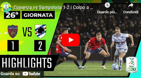 È terminata 1-2 il match di serie B tra Cosenza e Sampdoria.