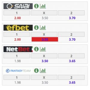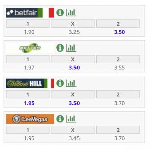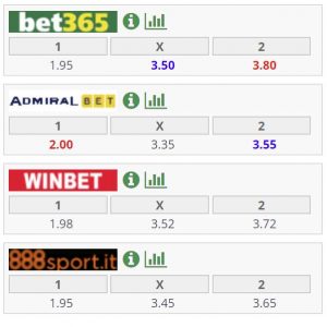Di seguito le quote dei bookmakers: