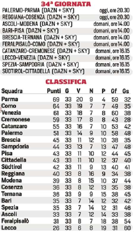 Inizia la trentaquattresima giornata di Serie B. Di seguito il programma completo.