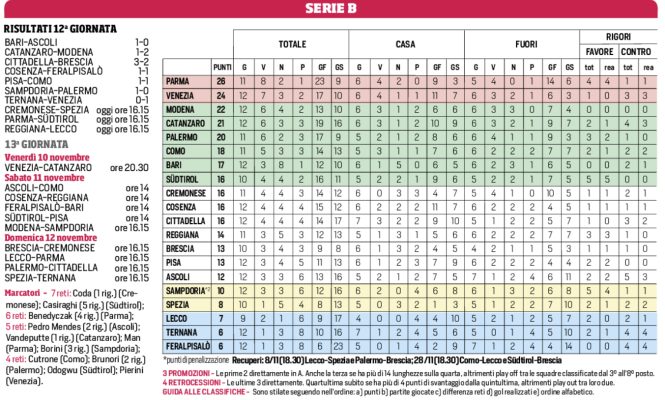 L’edizione odierna de “Il Corriere dello Sport” si sofferma sul programma di serie B e la classifica aggiornata in attesa del recupero tra Palermo e Brescia in programma mercoledì.
